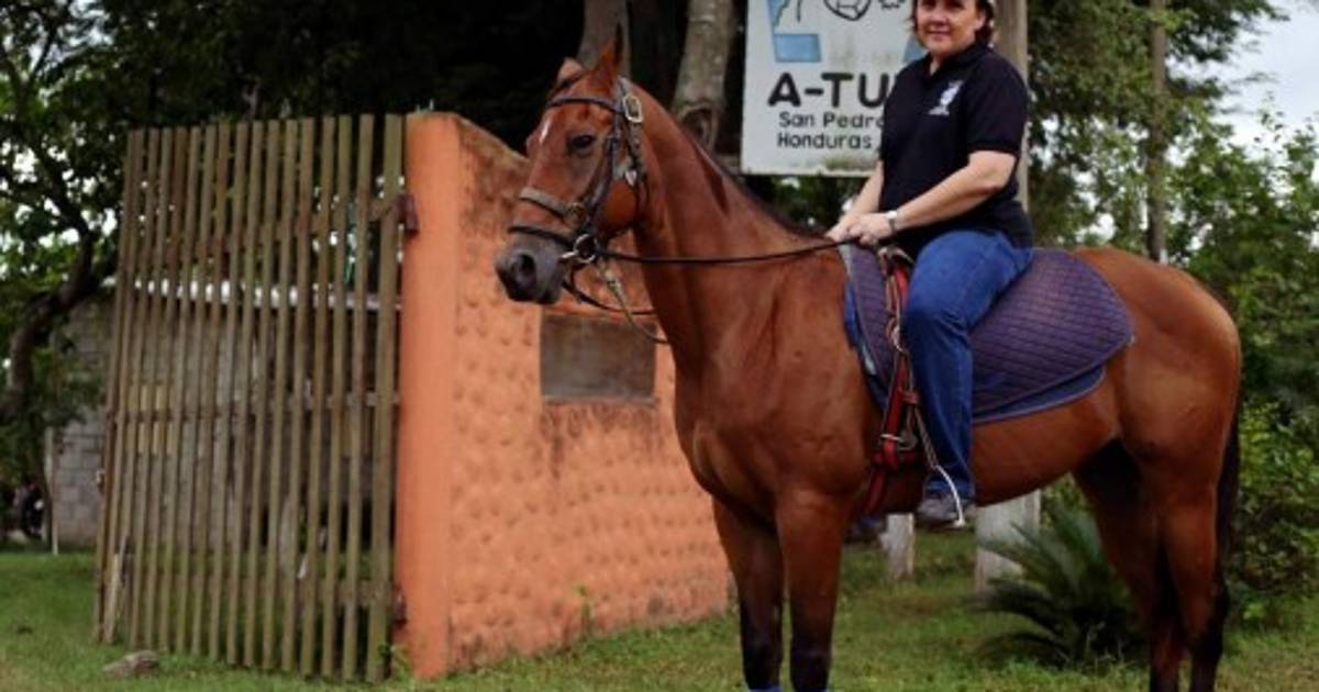 5 / 16Todas las tardes en su Centro de Hipoterapia A-Tuto cercano al campo Agas, se ve a la dama sampedrana y sus ayudantes, dando un paseo terapéutico a lomo de caballo. -