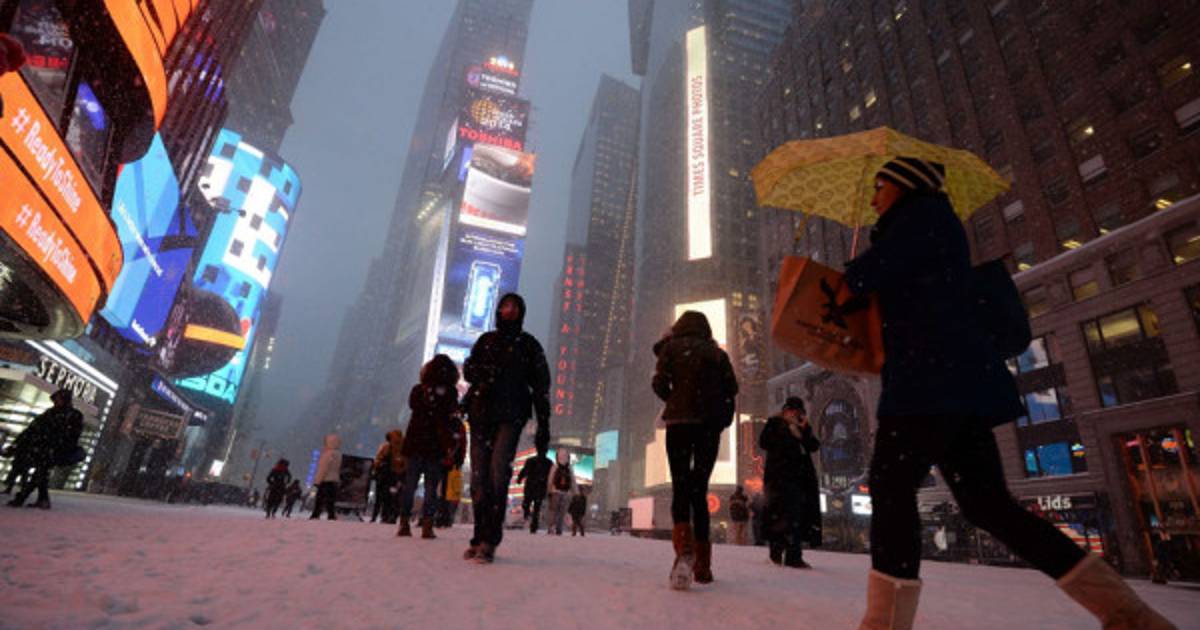 1 / 10Neoyorquinos caminan por Times Square cubierto de nieve. -