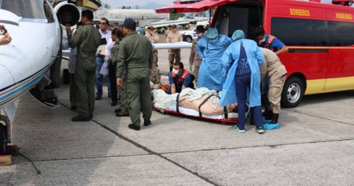 2 / 11Los rescatistas fueron llevados desde el Hospital Escuela Universitario (HEU) a la base de la Fuerza Aérea Hondureña, Hernán Acosta Mejía. -