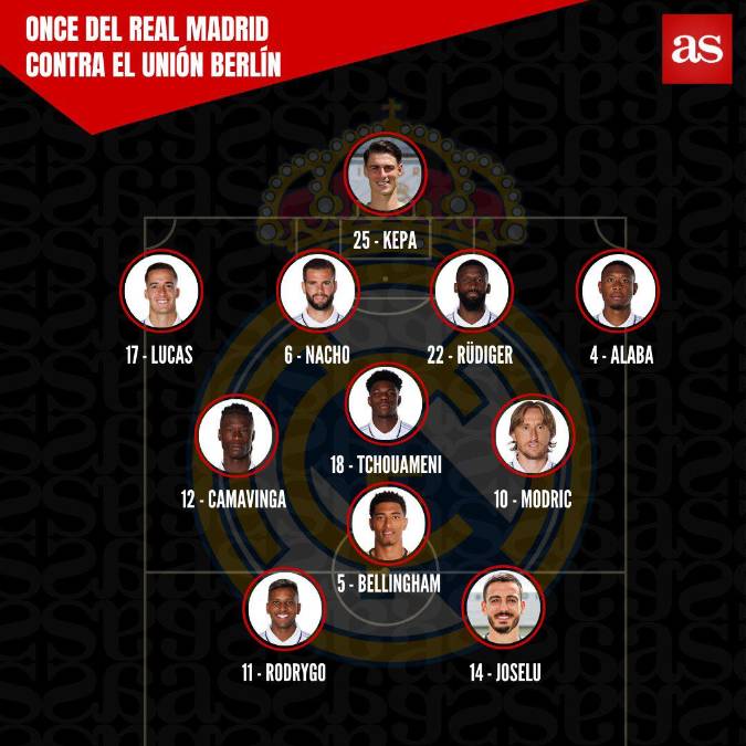 15 / 18Así sería la alineación del Real Madrid ante él Unión Berlín este miércoles 20 de septiembre.