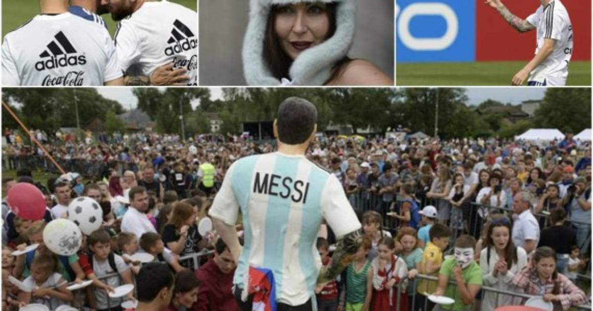 9 / 12Un réplica de Messi es expuesto en las afueras de la concentración de Argentina. -