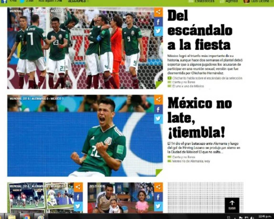 Así reaccionaron los medios luego del triunfo de México sobre Alemania