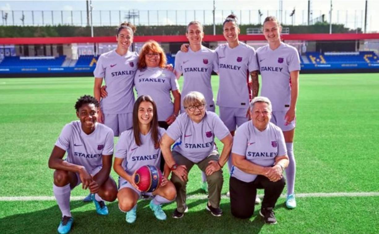 6 / 20Del lado del equipo femenino la idea es similar y homenajean a las primeras jugadoras de la sección femenina del Barcelona, como Lolita Ortiz, Consuelo Pérez y Pilar Gazulla, cuando se van a cumplir 50 años del partido que el 25 de diciembre de 1970 disputó en el Camp Nou el equipo de mujeres Selecció Ciutat de Barcelona, considerado como el embrión del fútbol femenino azulgrana. -