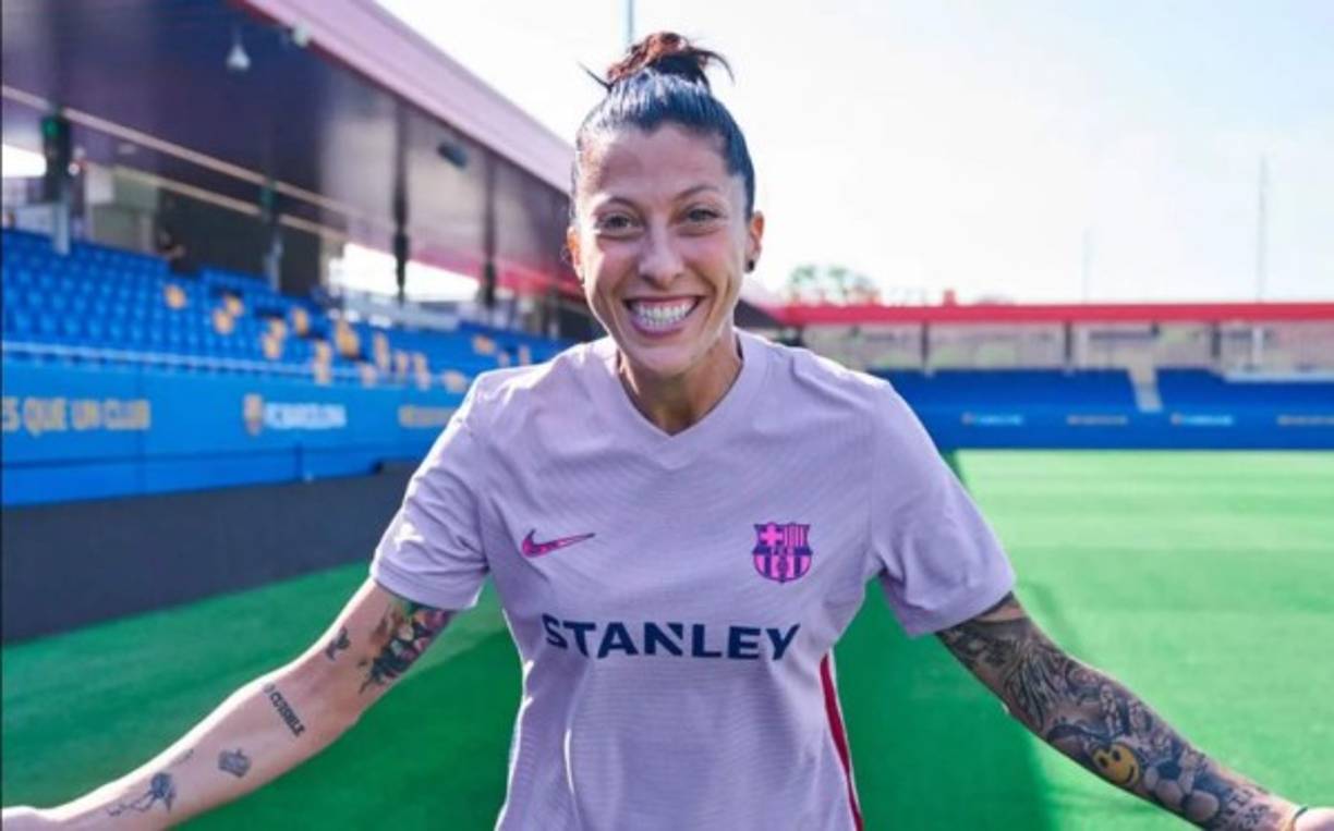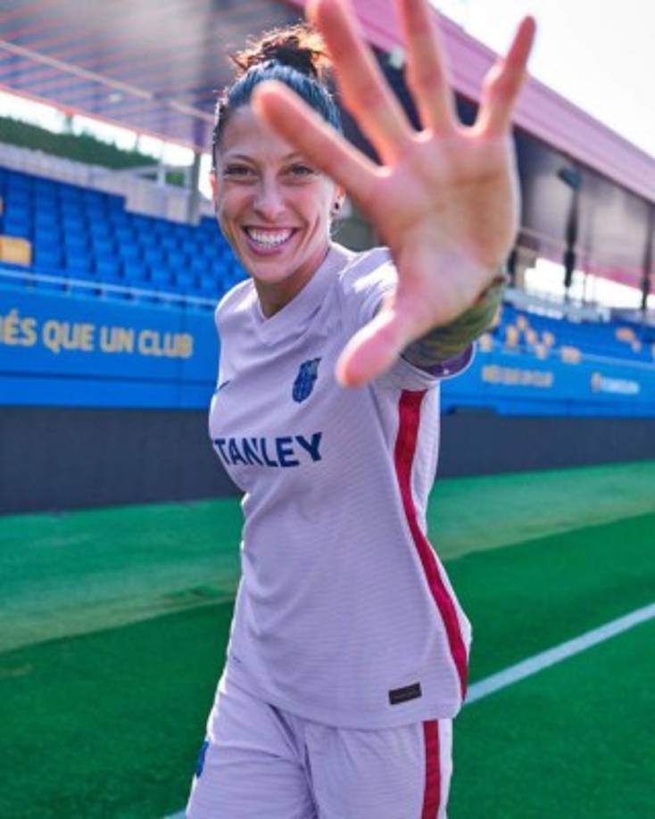 17 / 20La delantera Jennifer Hermoso, muy feliz con la camiseta del Barcelona. -