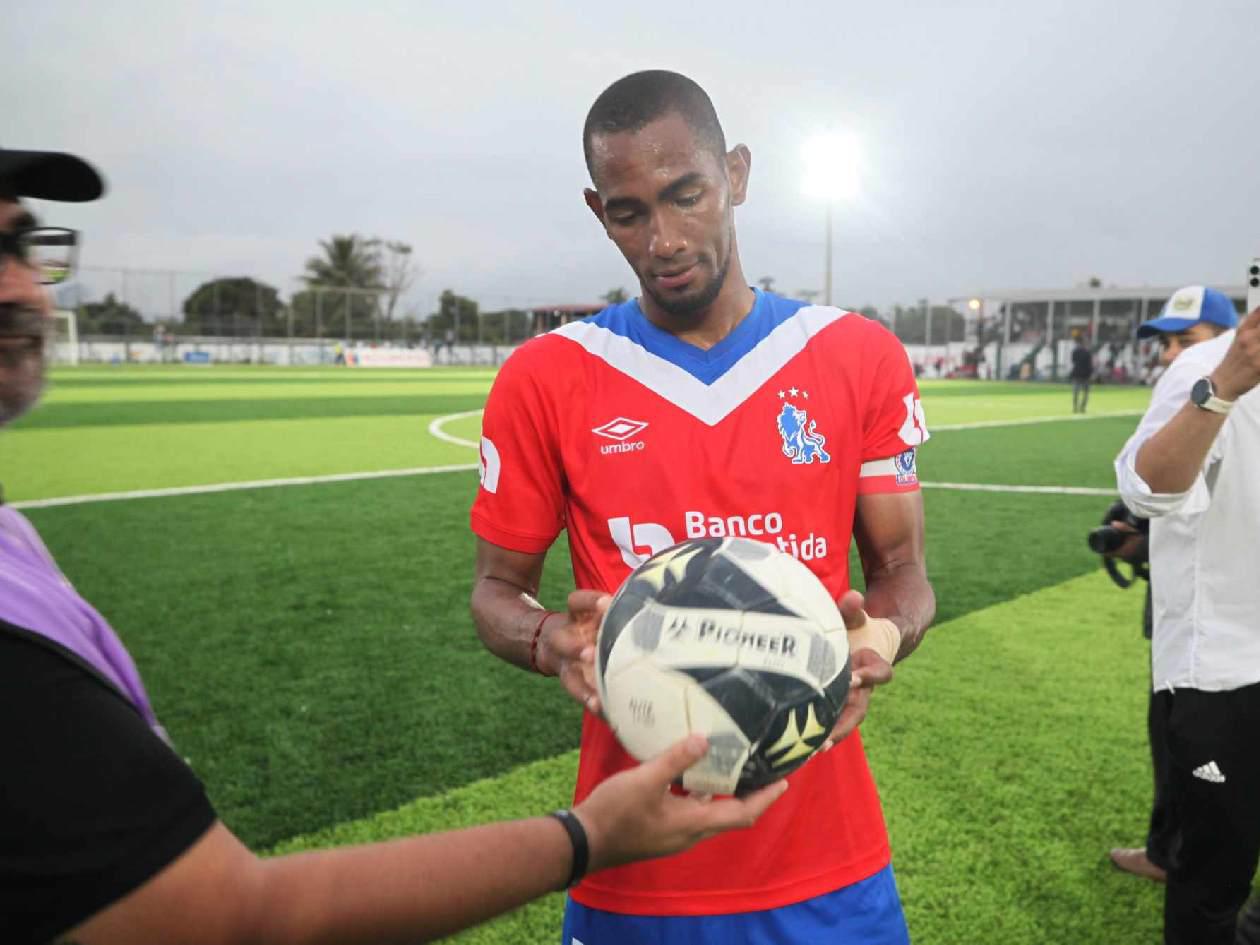 Tras finalizar el partido, Jerry Bengtson recibió el balón por su doblete y la historia que hizo en la Liga Nacional.