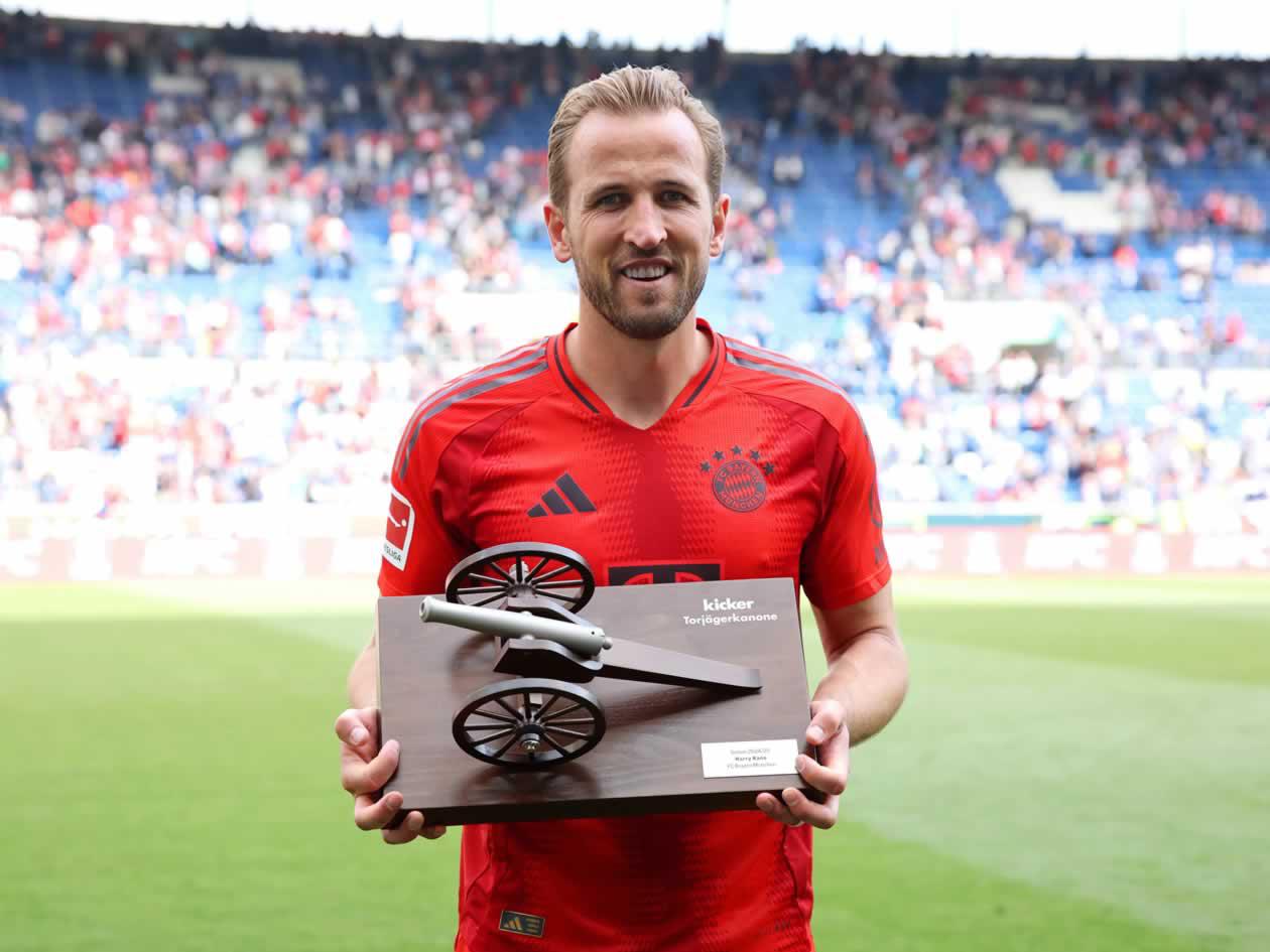 4. Harry Kane (Bayern Múnich): El delantero inglés cerró la temporada de la Bundesliga con 26 goles, líder de goleo del torneo, y equivalen a 52 puntos en la clasificación de la Bota de Oro 2024-2025.