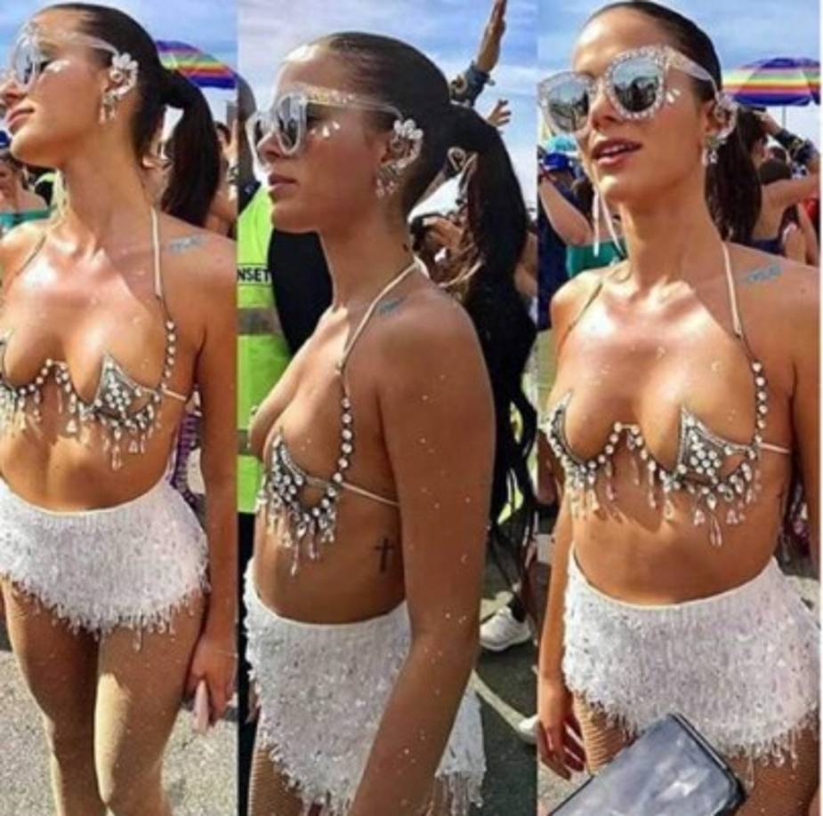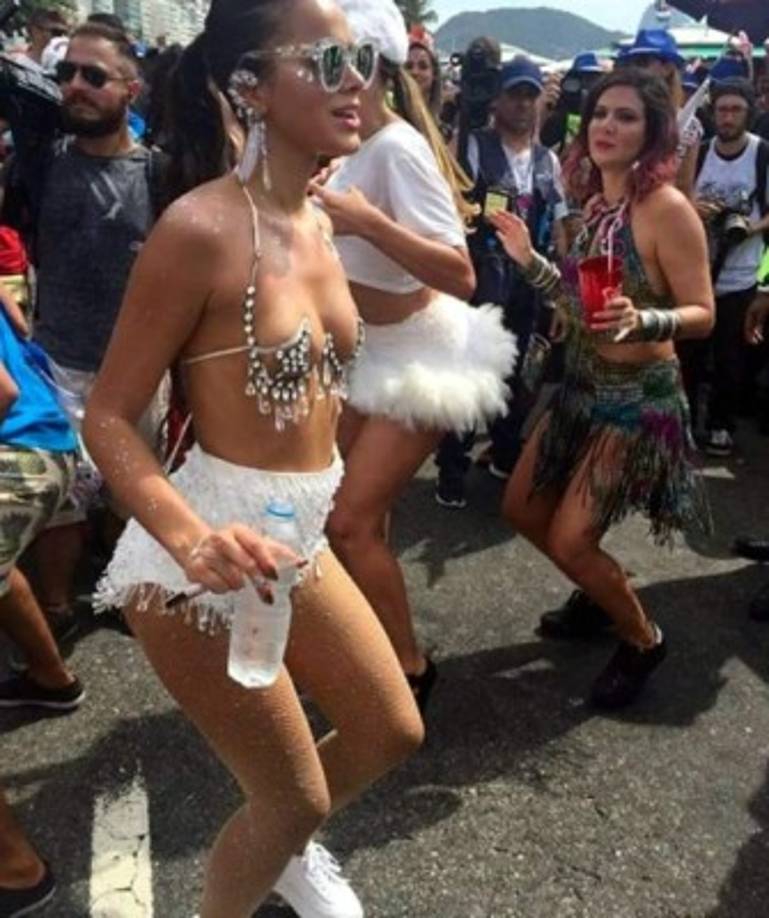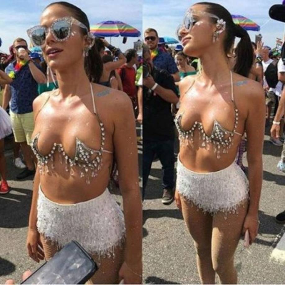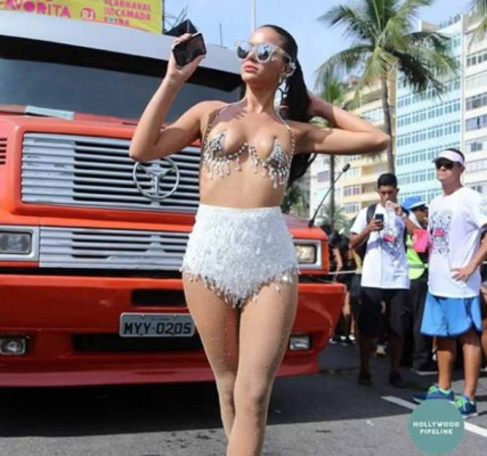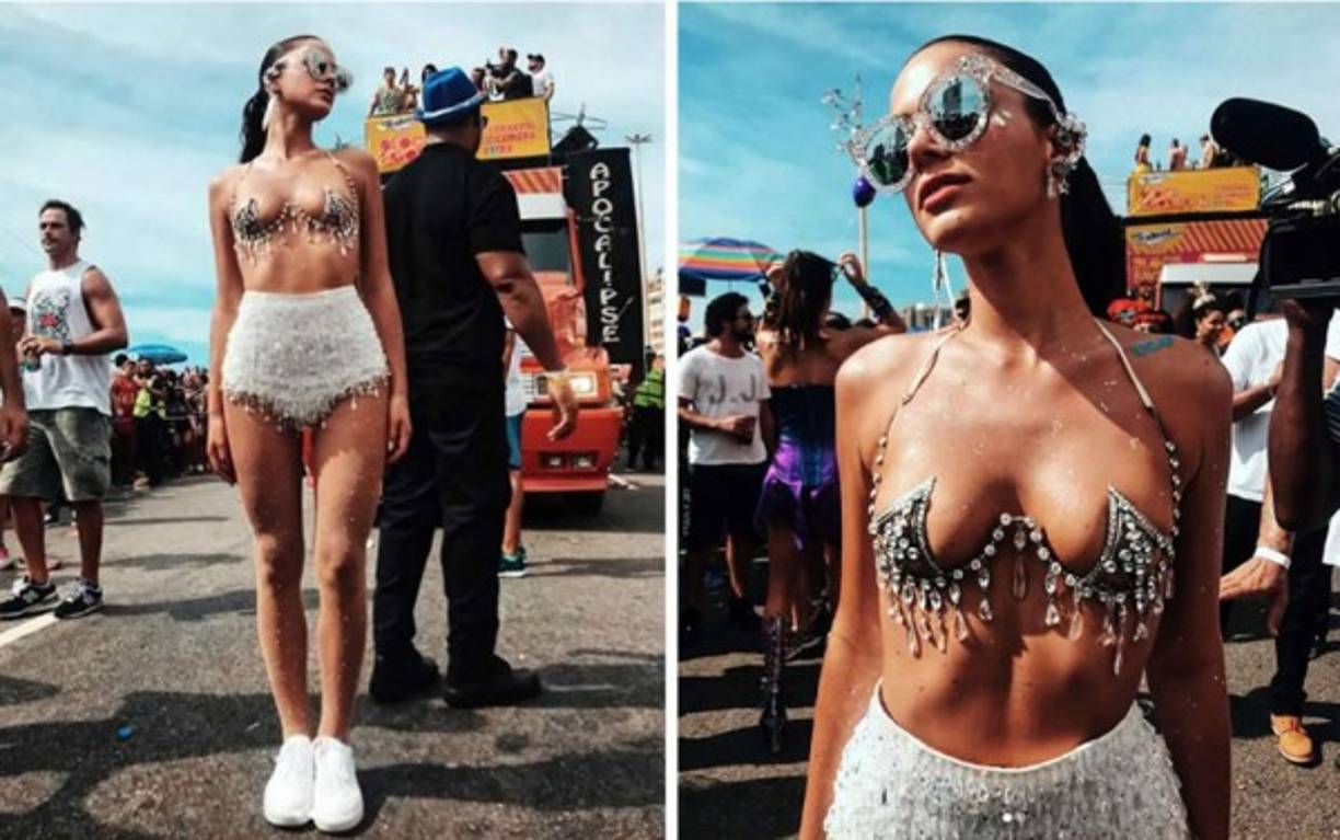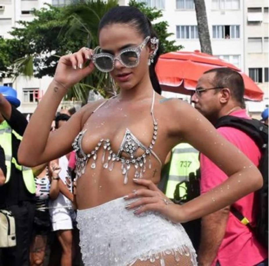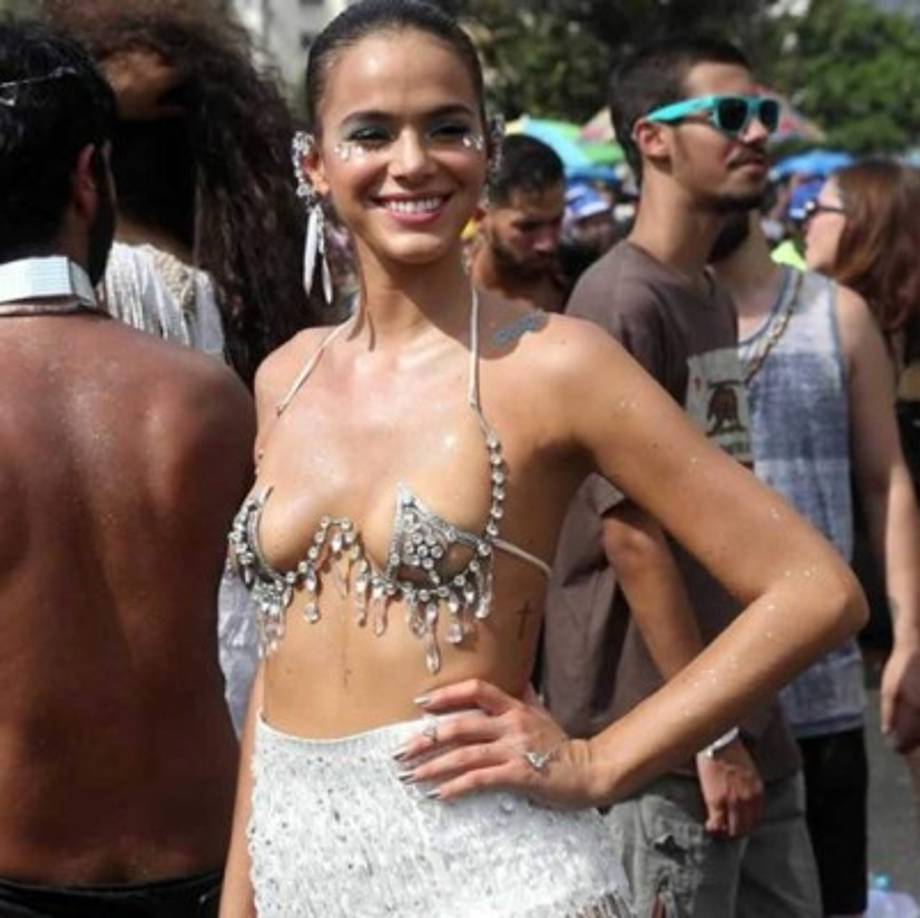 6 / 20Con un minúsculo sujetador de pedrería que dejaba prácticamente todos sus pechos al aire, y con una minifalda ajustada con brillos blancos, Bruna Marquezine fue el objeto de todos los focos por las calles de Río de Janeiro. -