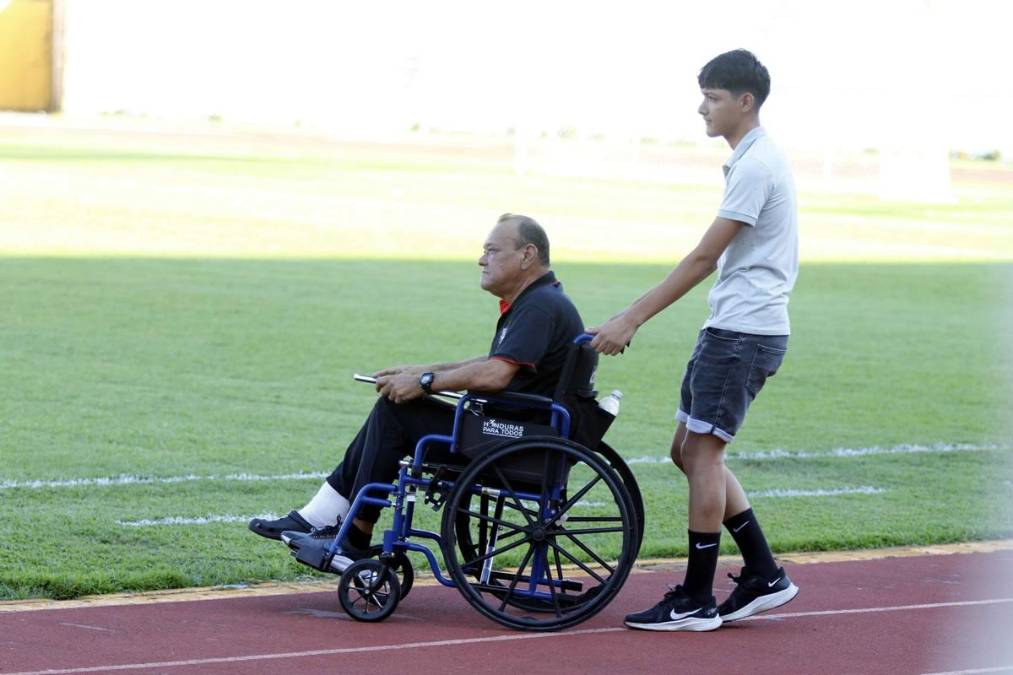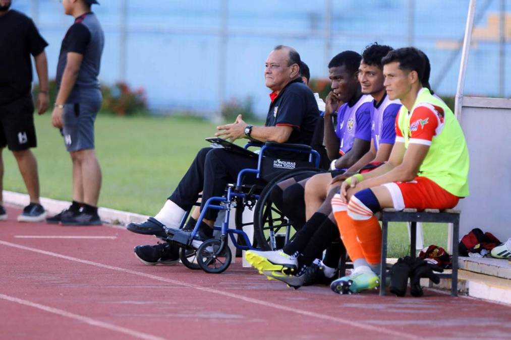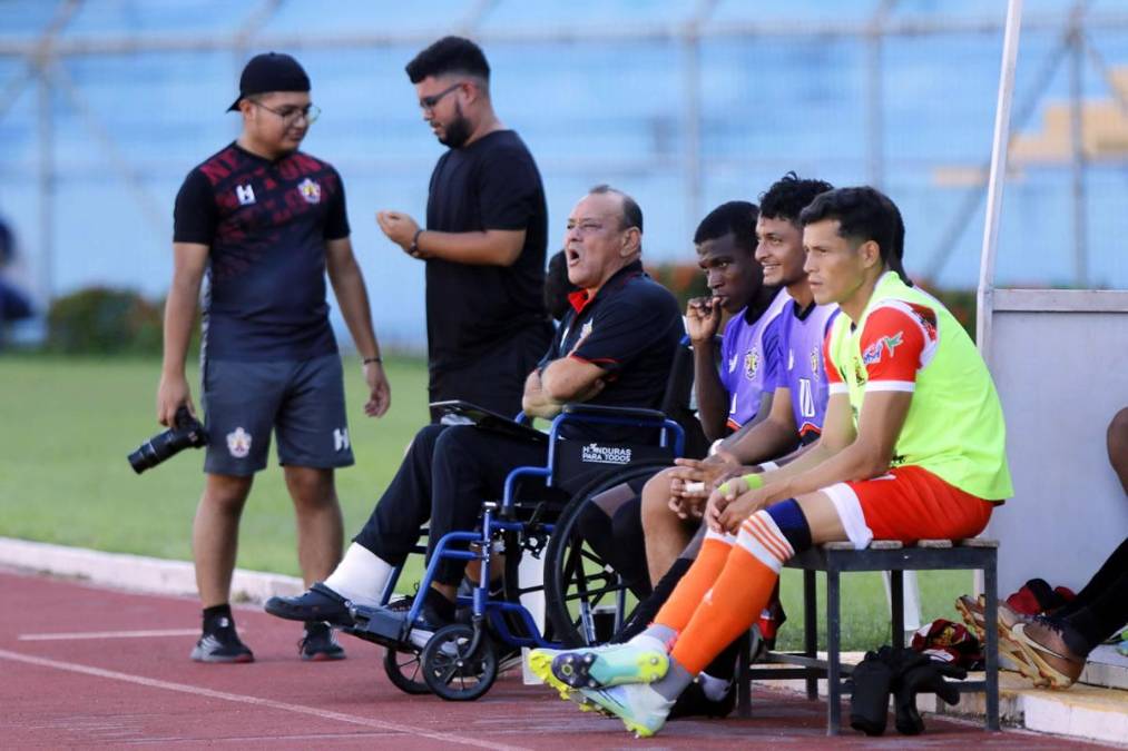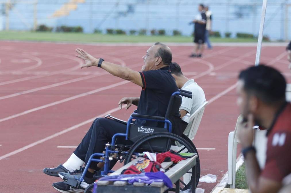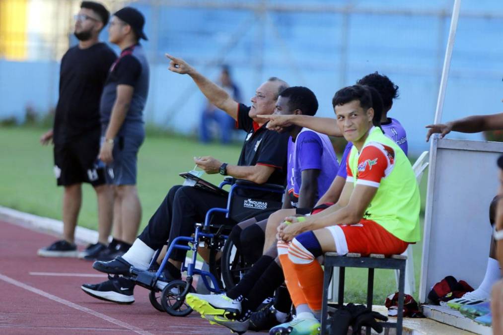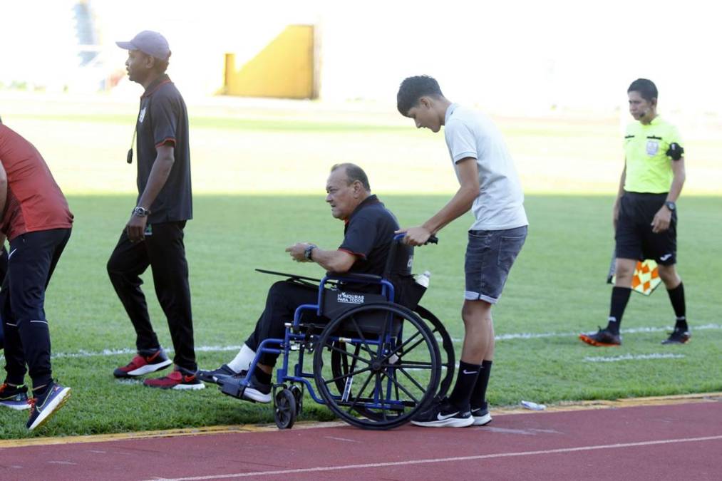 4 / 16El exfutbolista que participó con la Selección de Honduras en el Mundial de España 82’ y ahora es el actual entrenador de Lone FC de la Liga de Ascenso dirigió el partido en silla de ruedas en Liga de Ascenso.