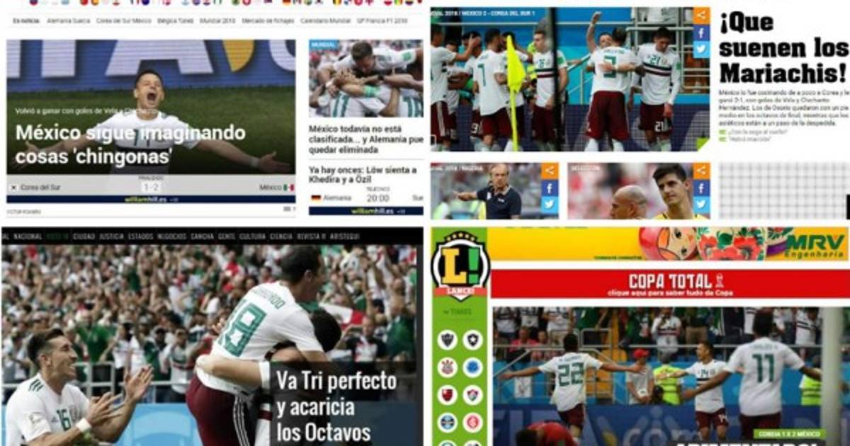 14 / 18"El diario El Universal destaca que 'México se impone a Corea del Sur y se acerca a la siguiente ronda'. " - 15 / 18"TyC Sports de Argentina tituló: 'México confirmó ante Corea del Sur'."