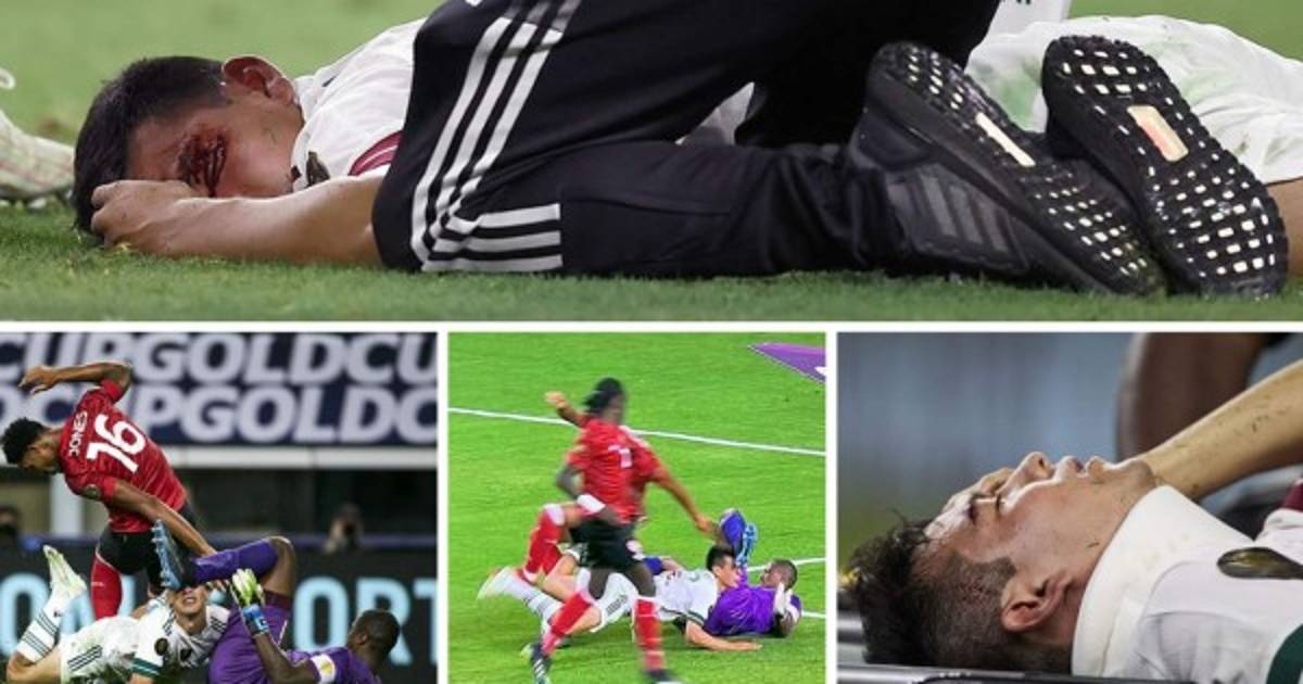 El delantero de México fue trasladado a un hospital tras el terrible choque con el portero triniteco.