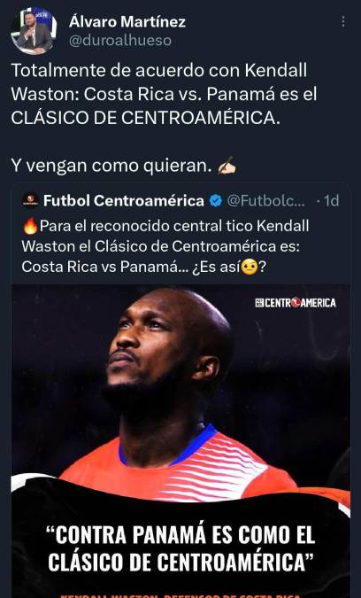 3 / 15Tras las palabras de Kendall Waston, periodistas de Panamá reaccionaron y señalaron que el clásico centroamericano ya es Costa Rica vs Panamá y no el Costa Rica vs Honduras.