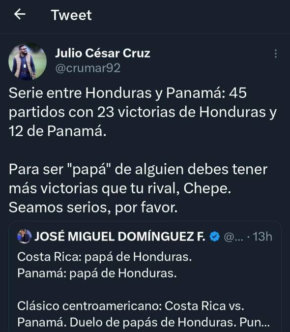 4 / 15“Clásico centroamericano: Costa Rica vs Panamá. Duelo de papás de Honduras”, disparó el periodista panameño José Domínguez, mejor conocido como Chepebomba.