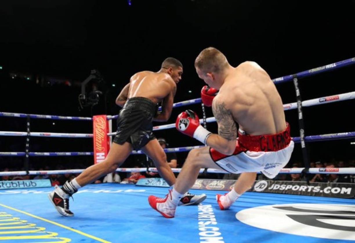 1 / 6BOXEO. Gancho y a la lona. Conor Benn derriba de un derechazo a Nathan Clarke en la pelea del campeonato de peso welter disputada en Manchester, Inglaterra. -