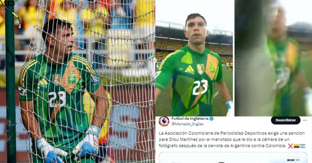 9 / 19“La Asociación Colombiana de Periodistas Deportivos exige una sanción para Dibu Martínez por el manotazo que le dio a la cámara de un fotógrafo después de la derrota de Argentina contra Colombia”.