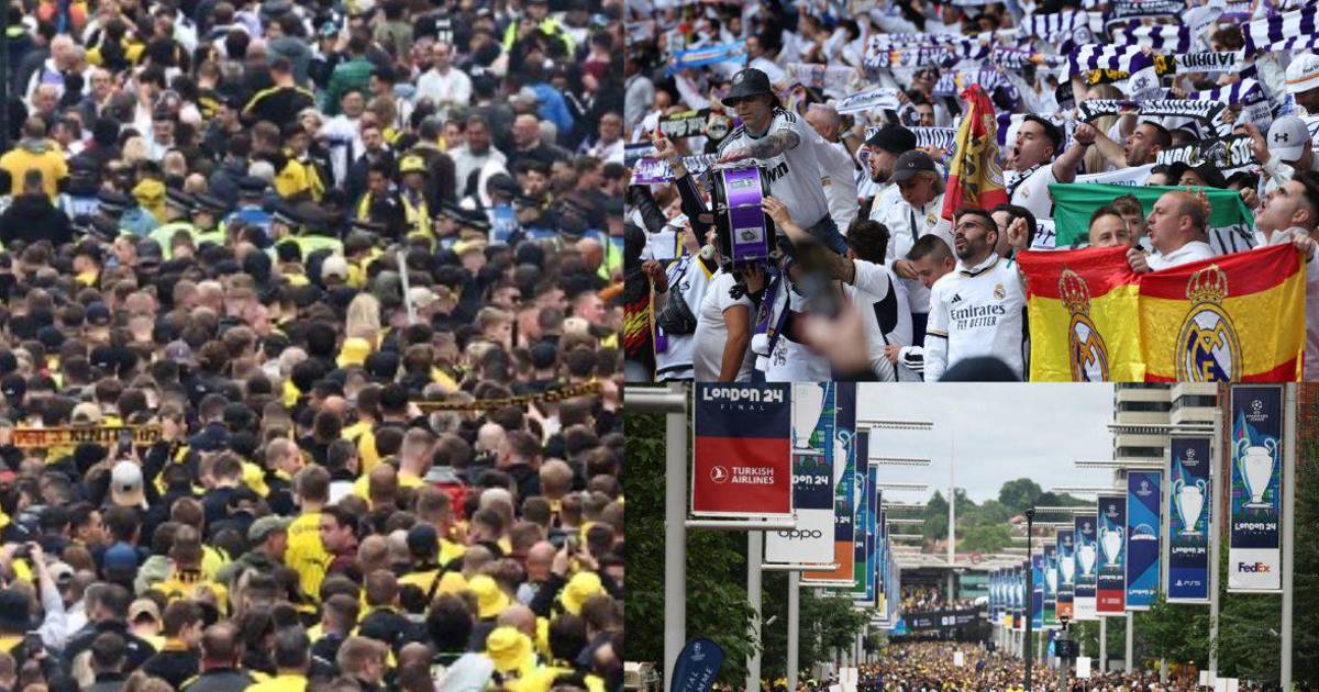 Las imágenes del espectacular ambiente en Wembley por la final de la Champions League entre Borussia Dortmund y Real Madrid.