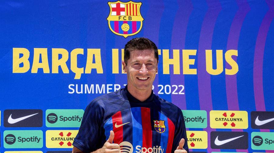 El delantero polaco, Robert Lewandowski, fue presentado este día como nuevo jugador del FC Barcelona en Fort Lauderdale, Florida.