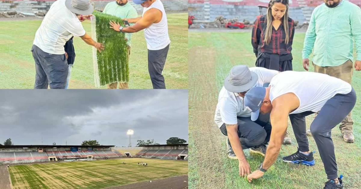 En fotos: los nuevos avances de la nueva grama híbrida del estadio Ceibeño