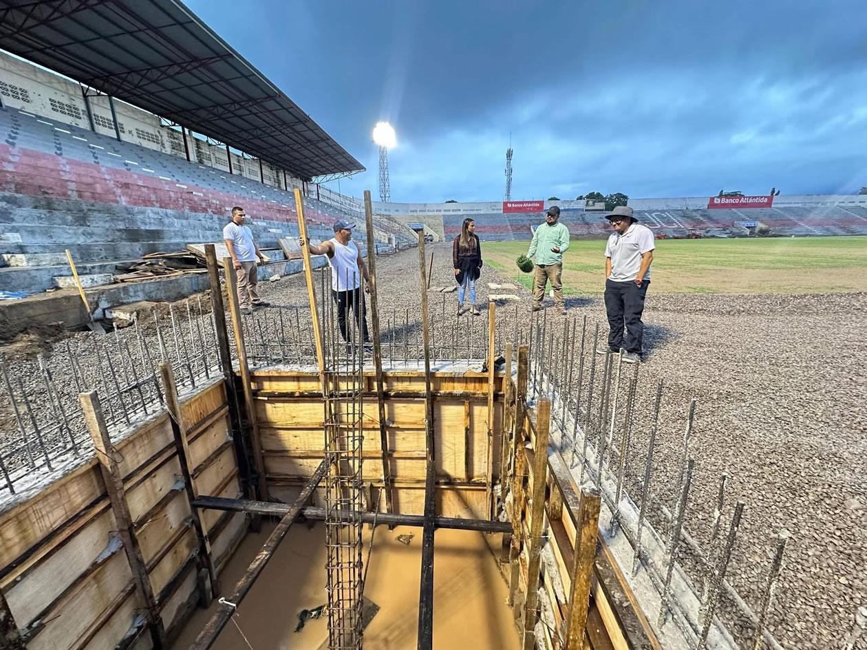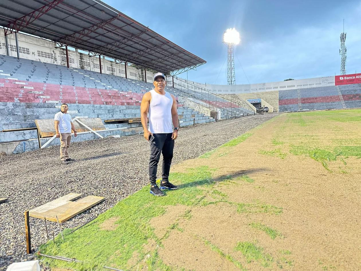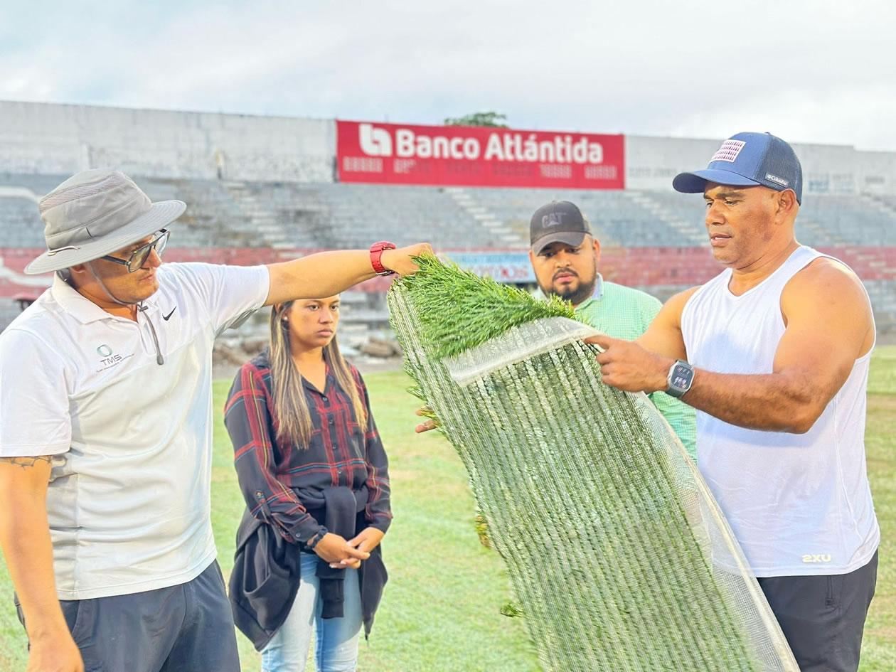 El propio Mario Moncada, Comisionado Nacional de Deportes, Educación Física y Recreación, ha realizado una evaluación de los avances de la nueva grama del estadio de La Ceiba.