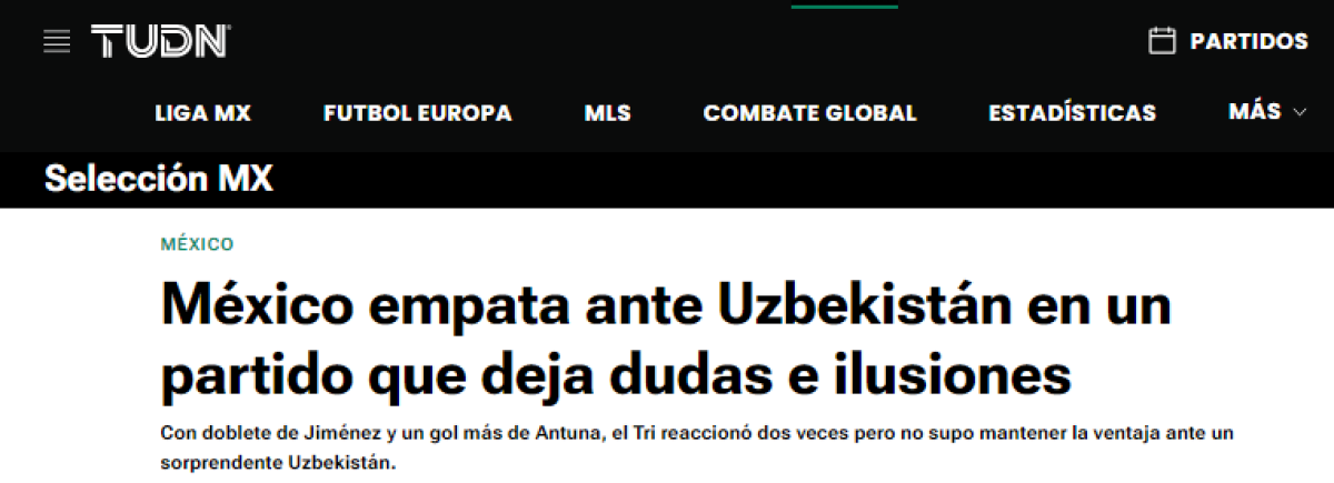 2 / 20TUDN: “México empata ante Uzbekistán en un partido que deja dudas e ilusiones”