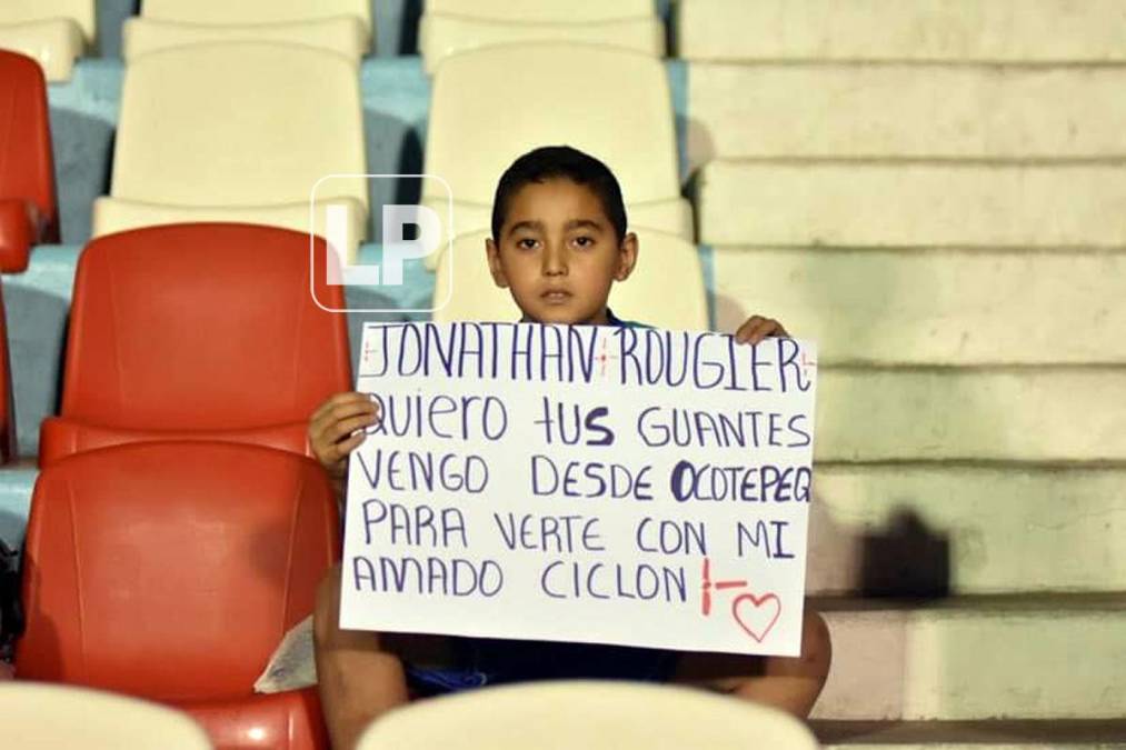 4 / 46Este pequeño aficionado del Motagua llegó al estadio Nacional Chelato Uclés con esta pancarta para Rougier.
