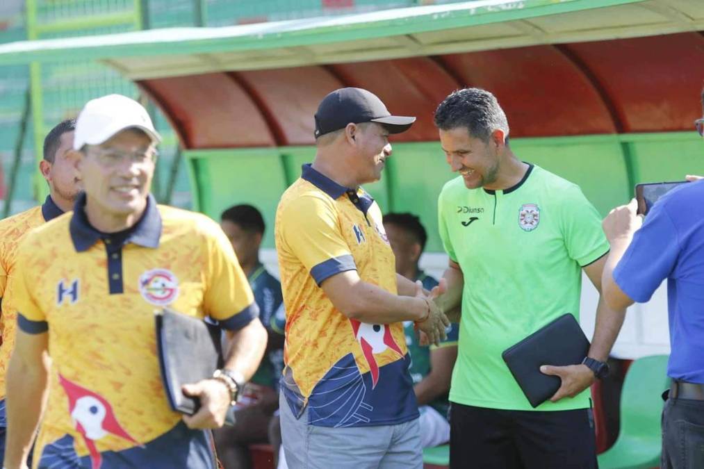 3 / 40Reynaldo Tilguath, entrenador del Génesis, saludando a Víctor Coello, asistente técnico del Marathón.