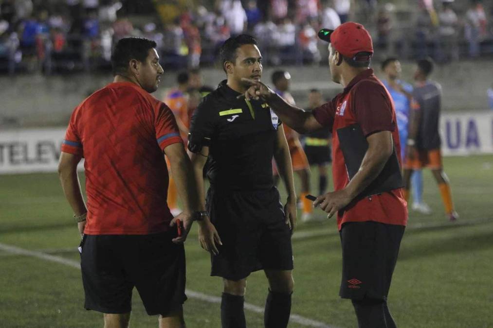 35 / 40Enfado del León. Miembros del cuerpo técnico melenudo dialogan con Said Martínez, cuarto árbitro del juego. UPN lo terminó empatando en el último suspiro del juego.