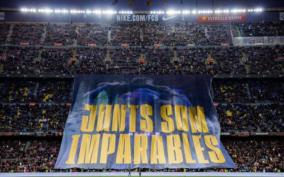 4 / 44La enorme pancarta que colocaron los aficionados del Barcelona antes del partido. -