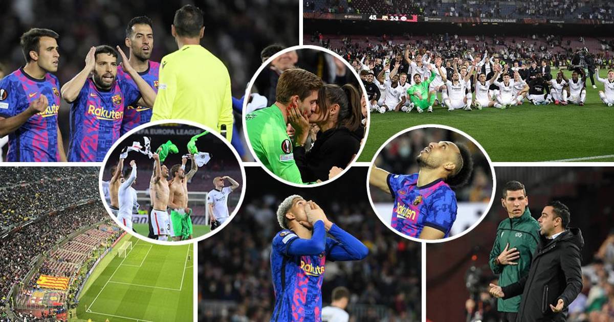 ¡Drama en el Barça! Afición se fue, reclamos de Xavi, beso apasionado y fiesta blanca del Eintracht Frankfurt
