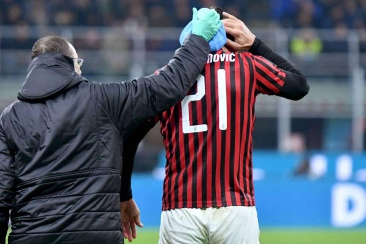 10 / 28Ibrahimovic recibiendo atención médica tras el golpe que se llevó. Foto AFP -