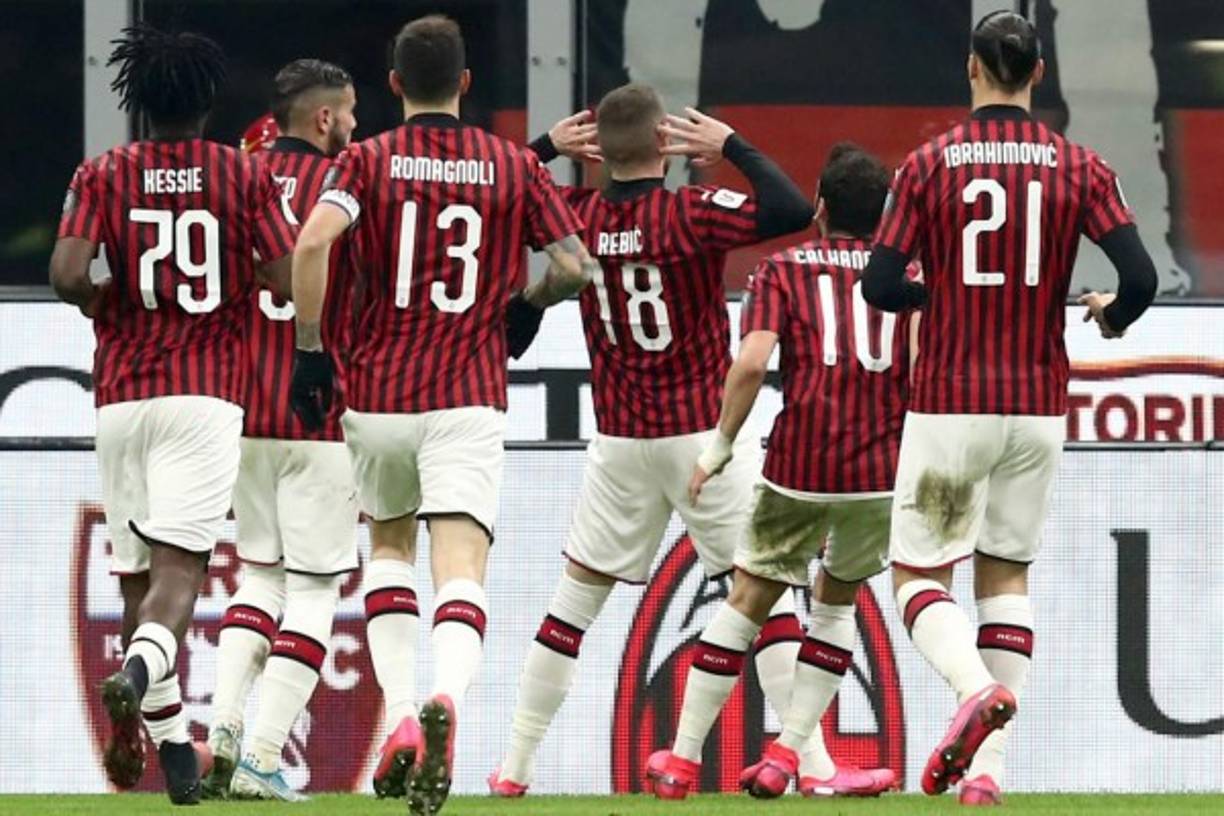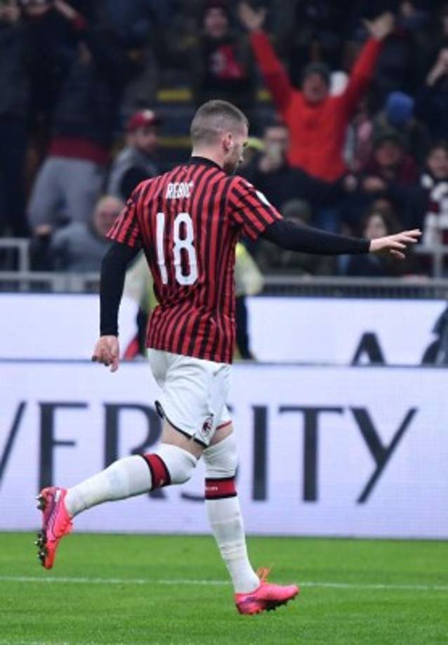6 / 28El Milan se fue adelante en el marcador con un gol del delantero croata Ante Rebić que así celebró. Foto AFP -