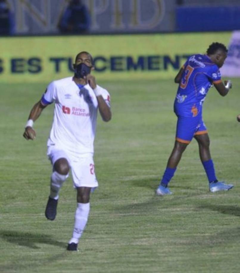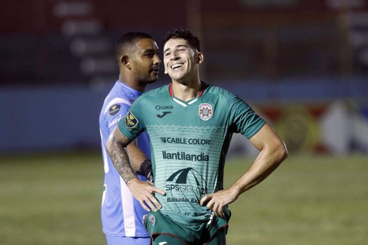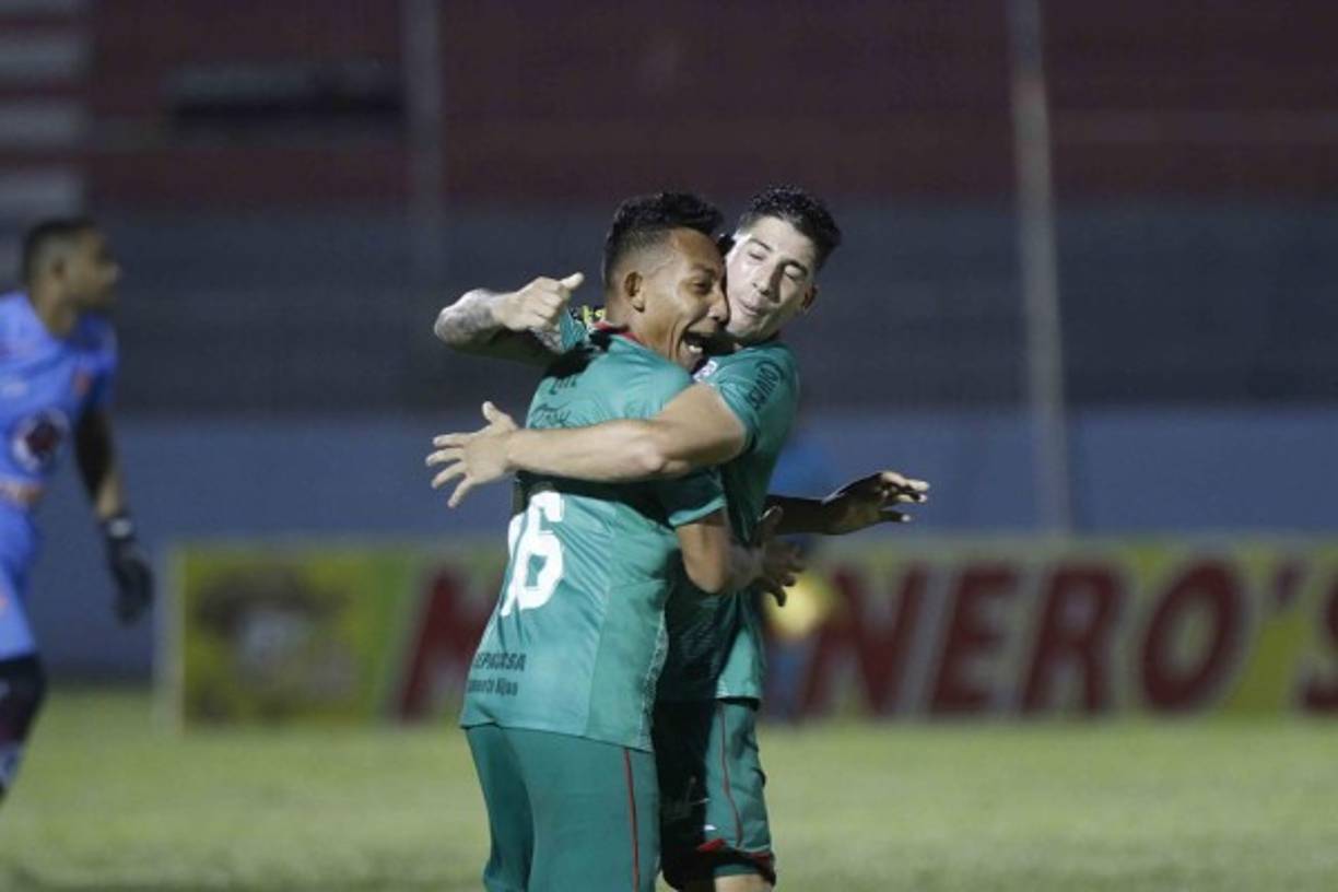 13 / 26Marathón por fin ganó con un gol de penal de Allan Banegas. El capitán verdolaga celebró con el argentino Ryduan Palermo, a quien le cometieron la falta. -