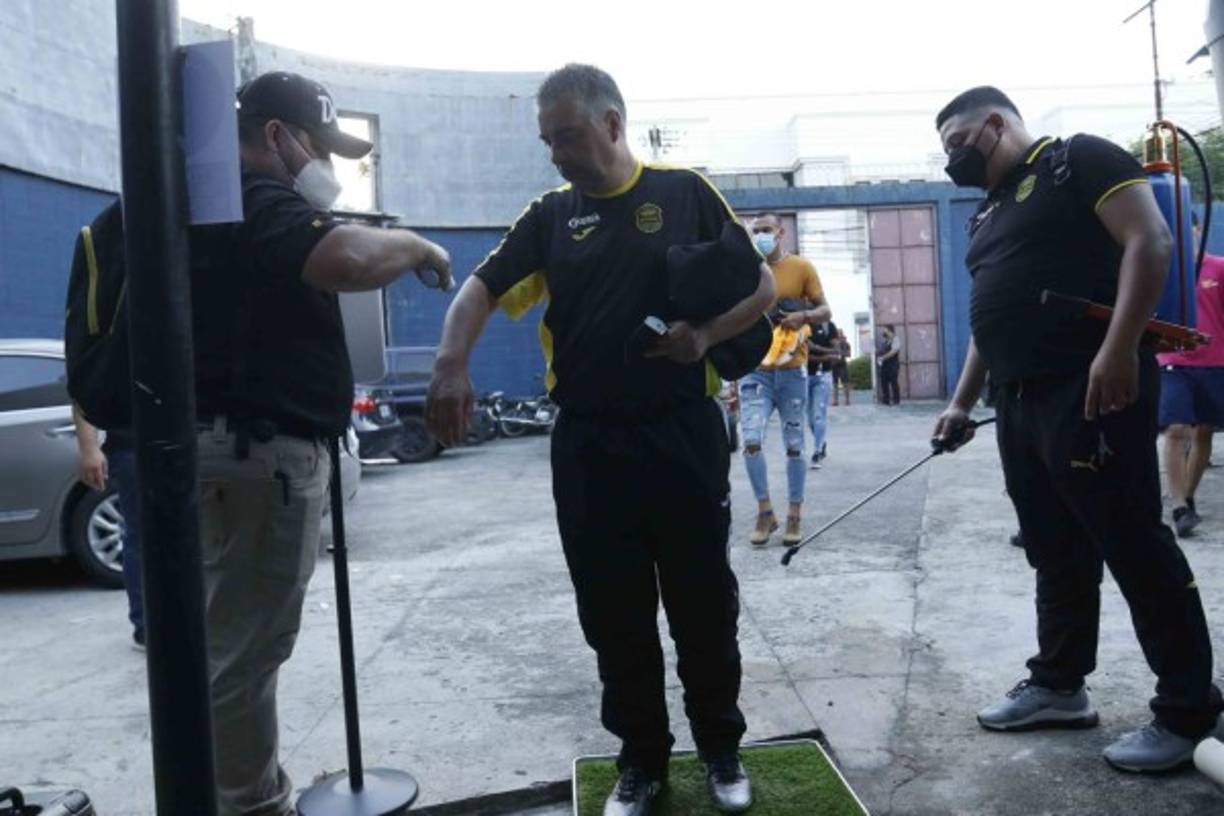 3 / 26Ramiro Martínez siendo sanitizado antes de ingresar al estadio Morazán. -