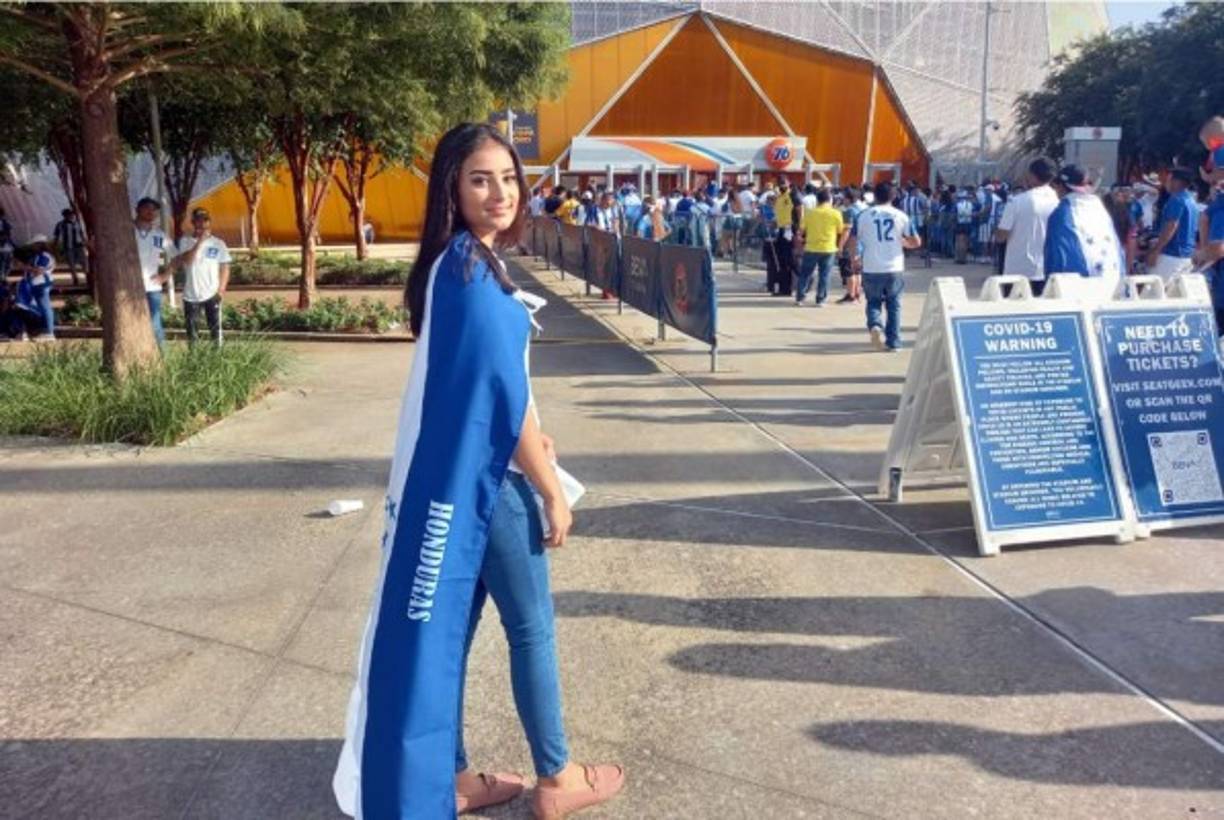 23 / 35La esposa del futbolista hondureño Kevin López adentro del BBVA Compass Stadium apoyando a la Bicolor. -