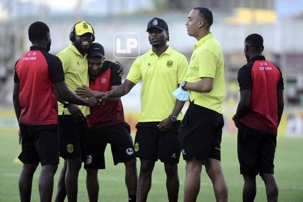 2 / 43Jugadores del Real España y Vida se saludaron sobre la cancha del estadio Excélsior antes del inicio del partido.