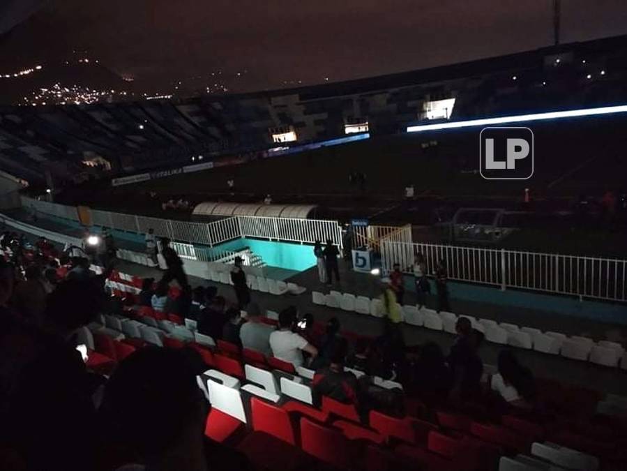 7 / 43El estadio Nacional Chelato Uclés quedó a oscuras por un buen rato y el partido se retrasó.