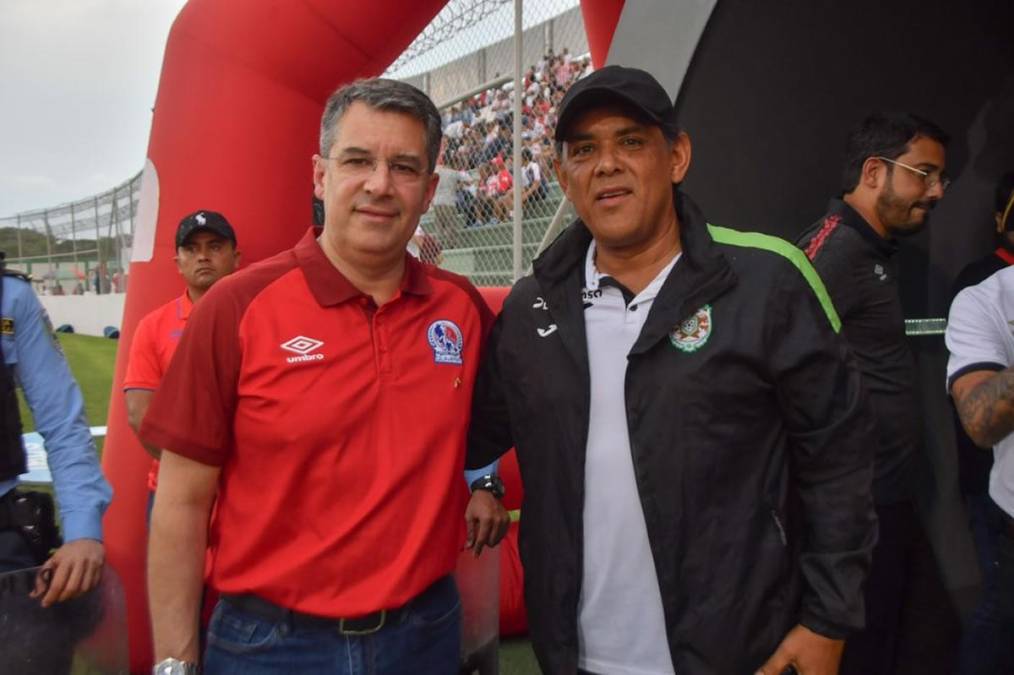 6 / 38Rafael Villeda, presidente del Olimpia, y Rolin Peña, vicepresidente de Marathón, se saludaron y posaron para la foto antes de la batallza de sus equipos.