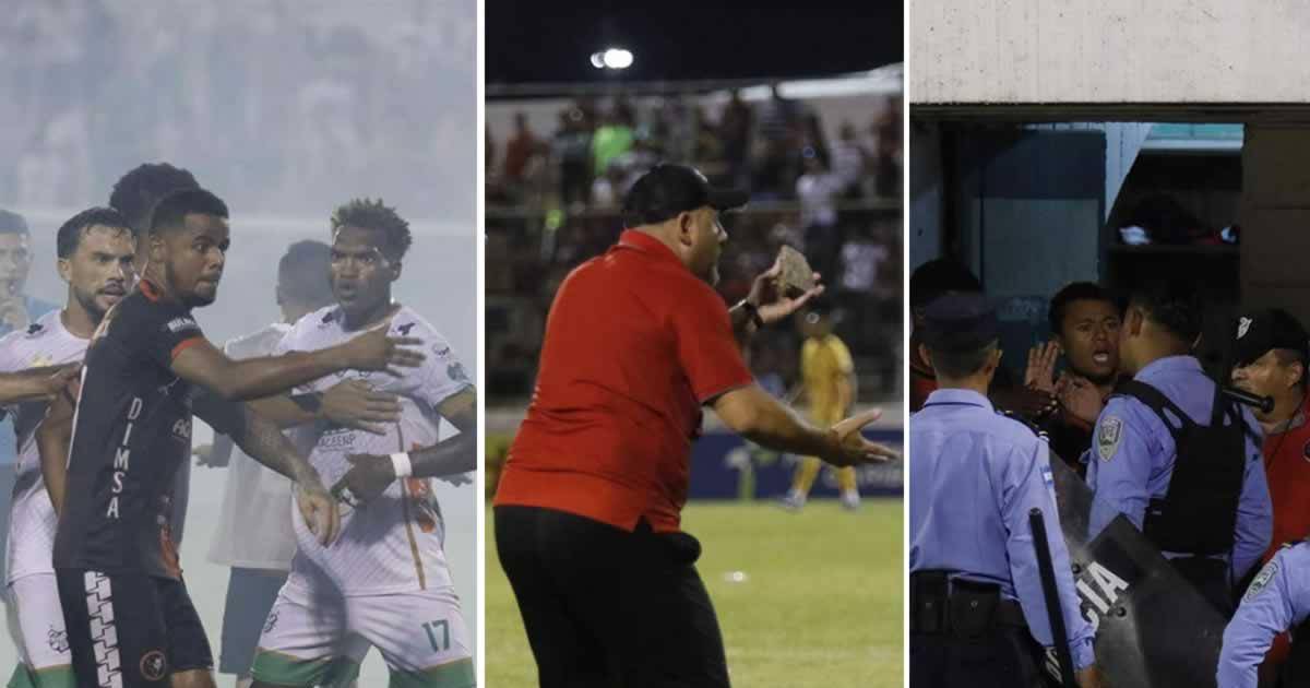 2 / 37El zafarrancho comenzó cuando seguidores del Platense lanzaron objetos al banquillo del Independiente de Siguatepeque en el tiempo agregado del minuto 90.