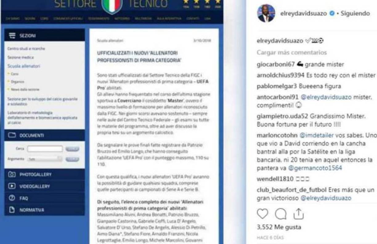 8 / 18David Suazo no desmaya y tras separado del Brescia, aprovechó y concluyó sus estudios para graduarse como entrenador con la Licencia UEFA Pro. Es la más alta que un DT puede tener en Europa. -