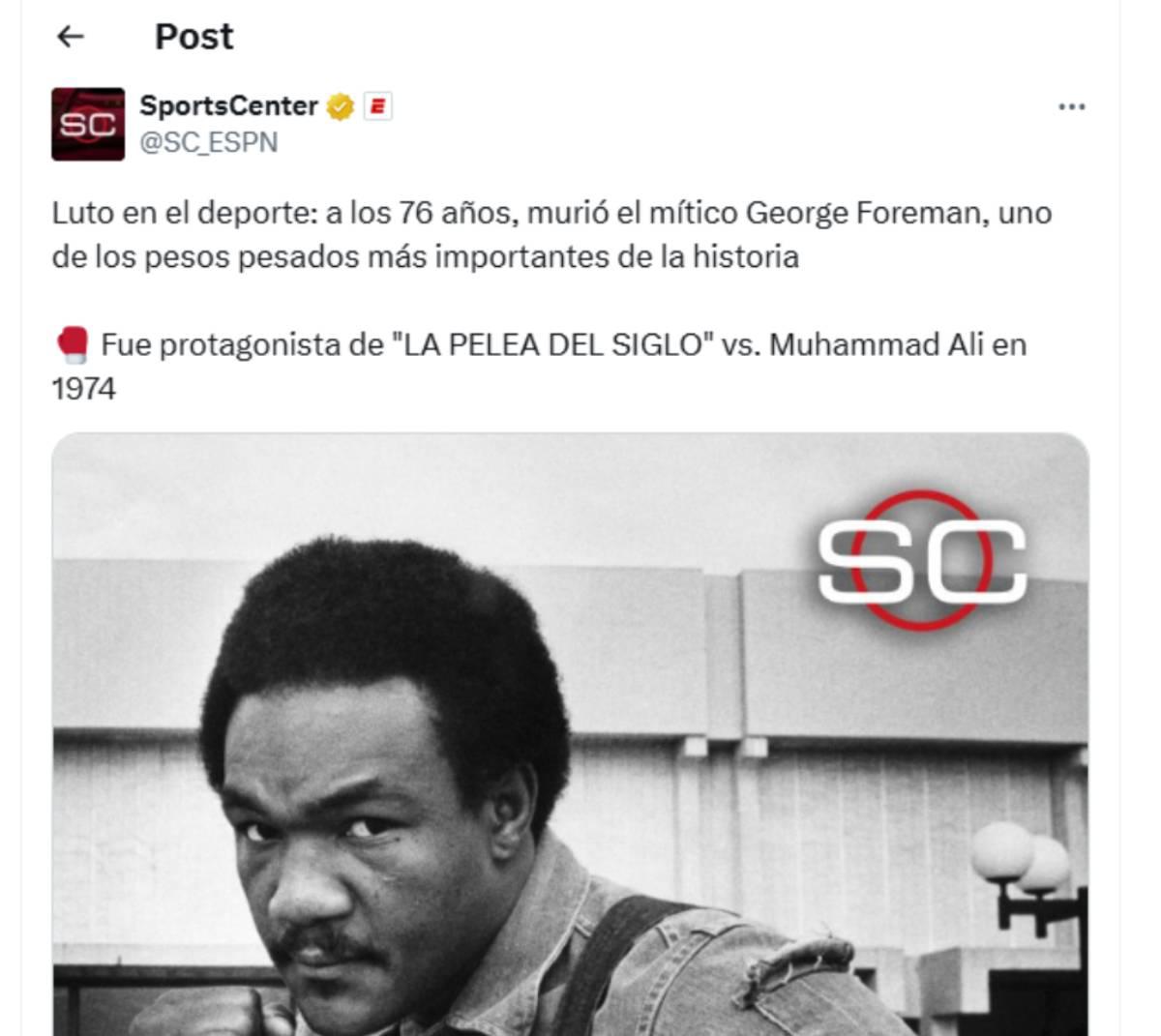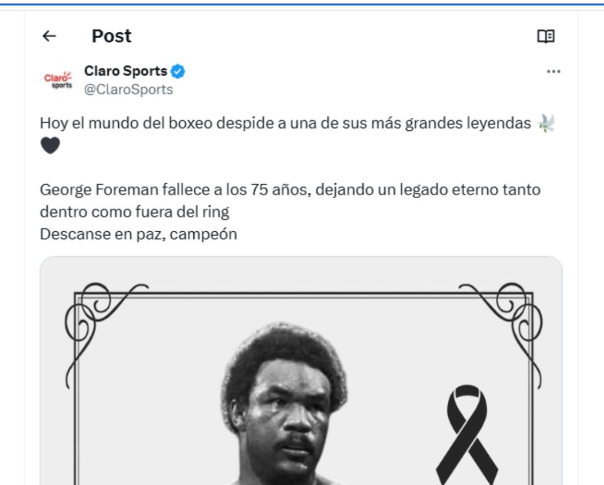 En el comunicado resaltaron que Foreman no solo será recordado por sus logros deportivos, sino también por su carácter y valores.