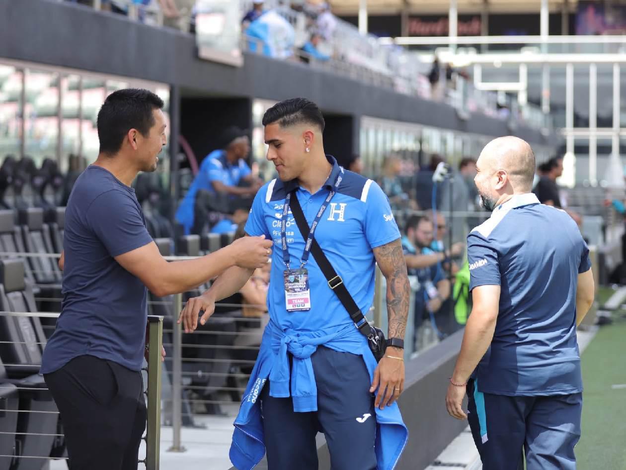 El exjugador catracho saludó a los seleccionados antes del inicio del partido.
