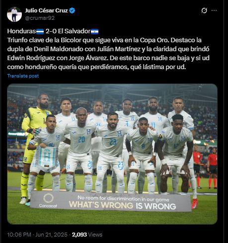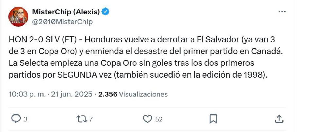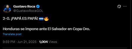 Y agregaba: "¡PAPÁ ES PAPÁ! Honduras se impone ante El Salvador en Copa Oro".