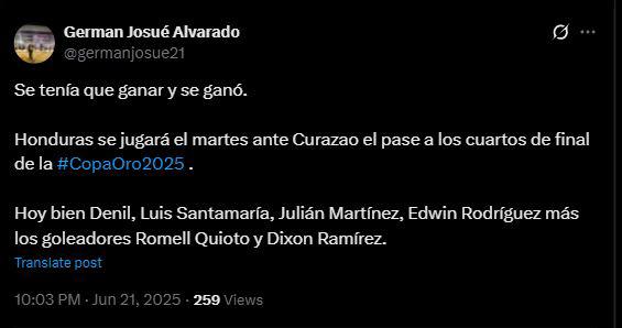 German Alvarado, periodista de LA PRENSA: "Se tenía que ganar y se ganó. Honduras se jugará el martes ante Curazao el pase a los cuartos de final de la #CopaOro2025".