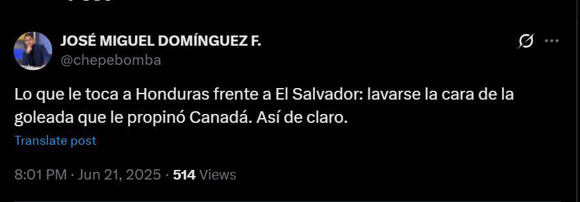 Chepe Bomba: "Lo que le toca a Honduras frente a El Salvador: lavarse la cara de la goleada que le propinó Canadá. Así de claro"
