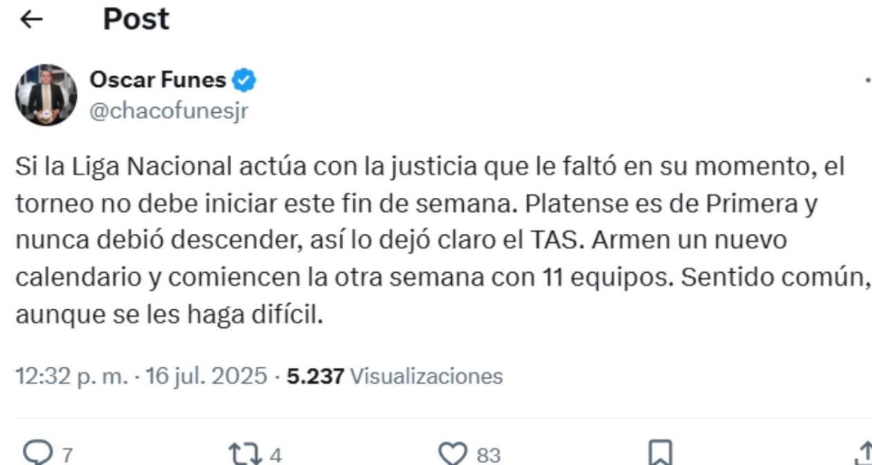 Platense debe de jugar en el Apertura 2025 en la Liga Nacional. Si en un caso no toman esa decisión, el fúitbol de Honduras corre el riesgo de sufrir duros castigos.