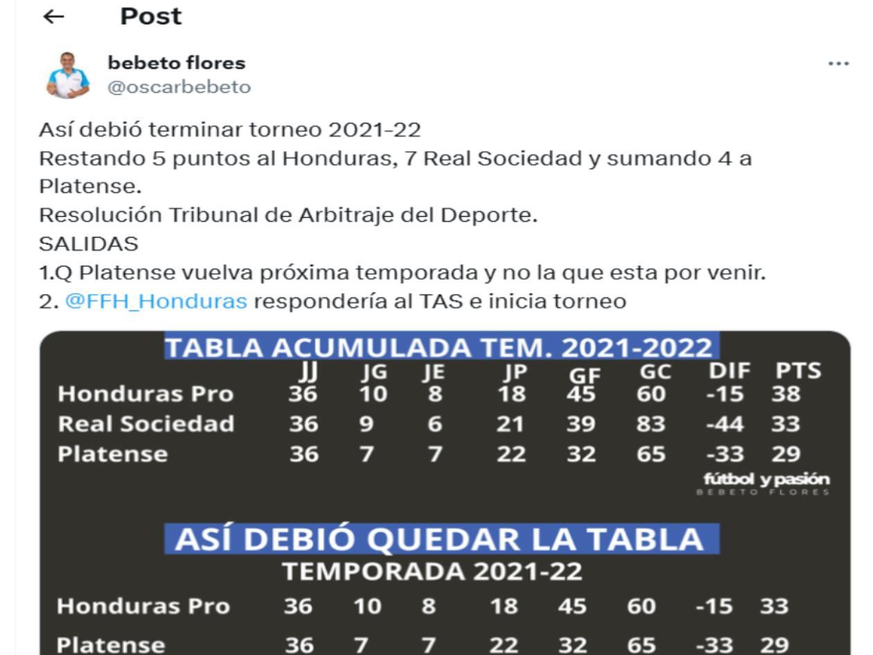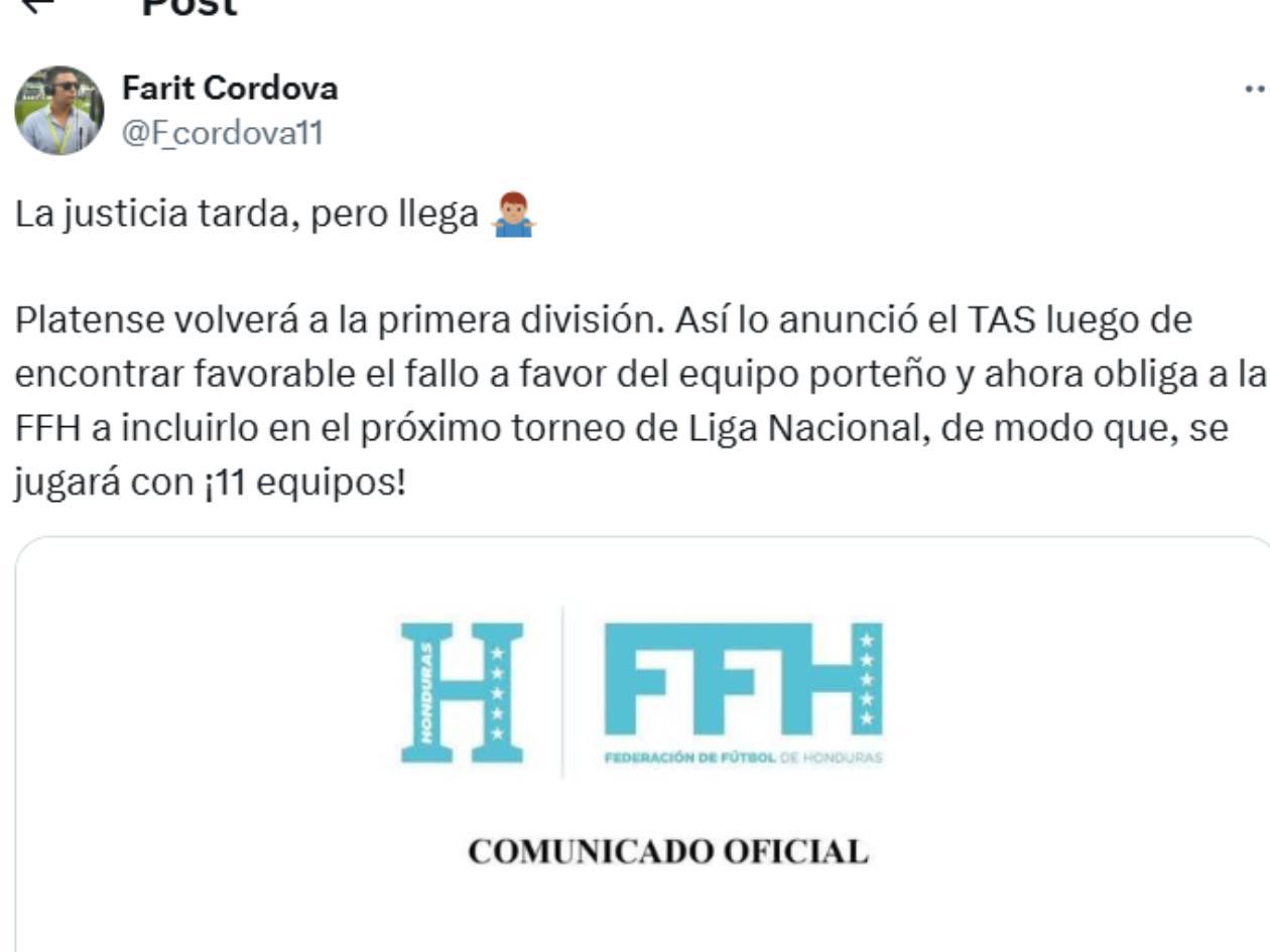Según el comunicado, Platense tenía razón en su reclamo de 2023 debido a irregularidades detectadas en Real Sociedad y Honduras Progreso. Estas situaciones afectaron el descenso del equipo en el torneo de ese año. El TAS calificó como erróneo el fallo inicial de la Comisión de Apelaciones de la FFH.