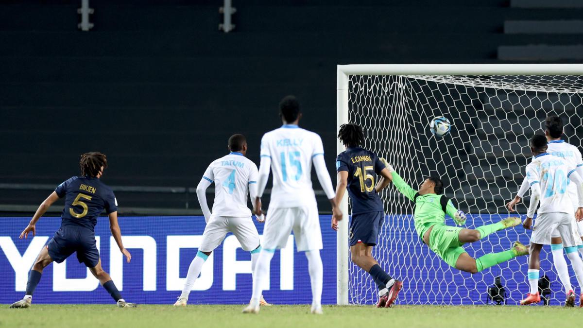 17 / 24El gol de Felix Nzouango para el tercero de Francia. No pudo hacer nada el portero hondureño Juergen García.