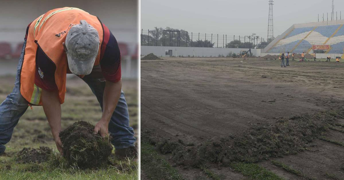 Ya están trabajando en el cambio de la grama del coloso sampedrano.