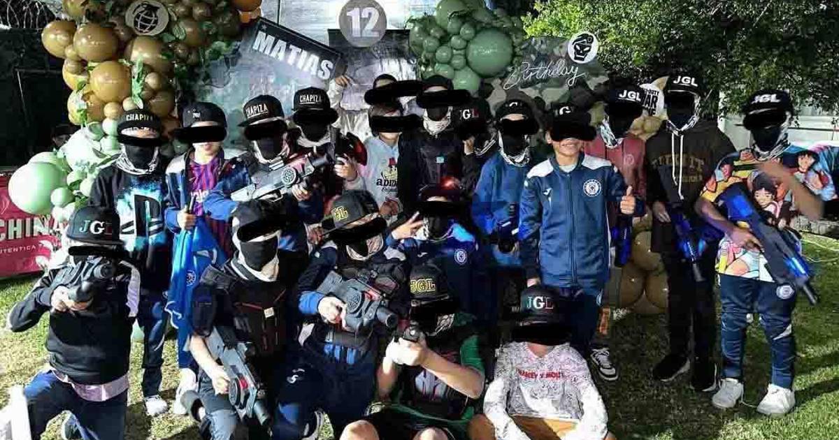 7 / 15En la fiesta organizada por el futbolista, los niños jugaron disparándose con armas de mentiras, con buzos del Cruz Azul y gorras al estilo del narco.