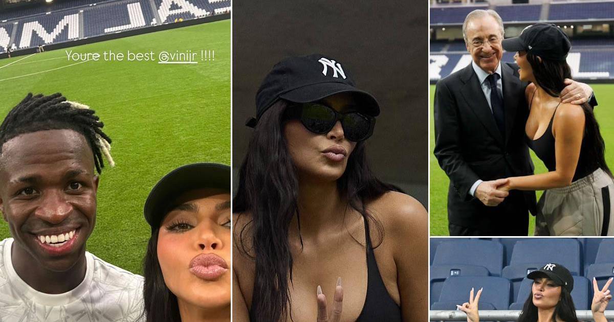 Kim Kardashian enamora en el Bernabéu: sus fotos con Florentino y elogio a Vinicius