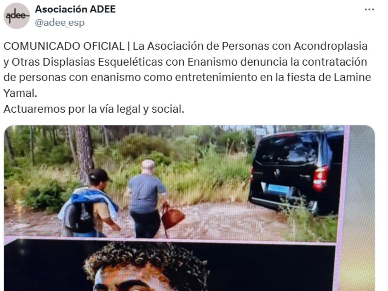 Mediante sus redes sociales y su página web, la Asociación de Personas con Acondroplasia y Otras Displasias Esqueléticas con Enanismo (ADEE) dio a conocer que procederá de manera "legal y social" contra Lamine Yamal.